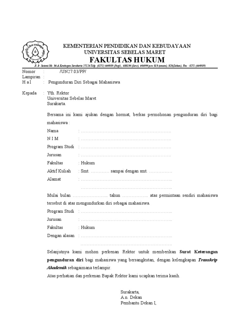 Contoh surat pengunduran diri calon mahasiswa contoh surat pernyataan pengunduran diri calon mahasiswa terkadang ketika anda sudah mendaftar di perguruan tinggi tertentu bisa saja ada alasan untuk anda mengundurkan diri dari pendaftaran di kampus tersebut. Contoh surat pengunduran diri mahasiswa dan dosen surat pengunduran diri mahasiswa. Surat pengunduran diri dari mahasiswa. Contoh surat pengunduran diri ini sering digunakan saat karyawan memutuskan untuk keluar dari perusahaan karena alasan tertentu. Kepala upt k3l uin malang prof.